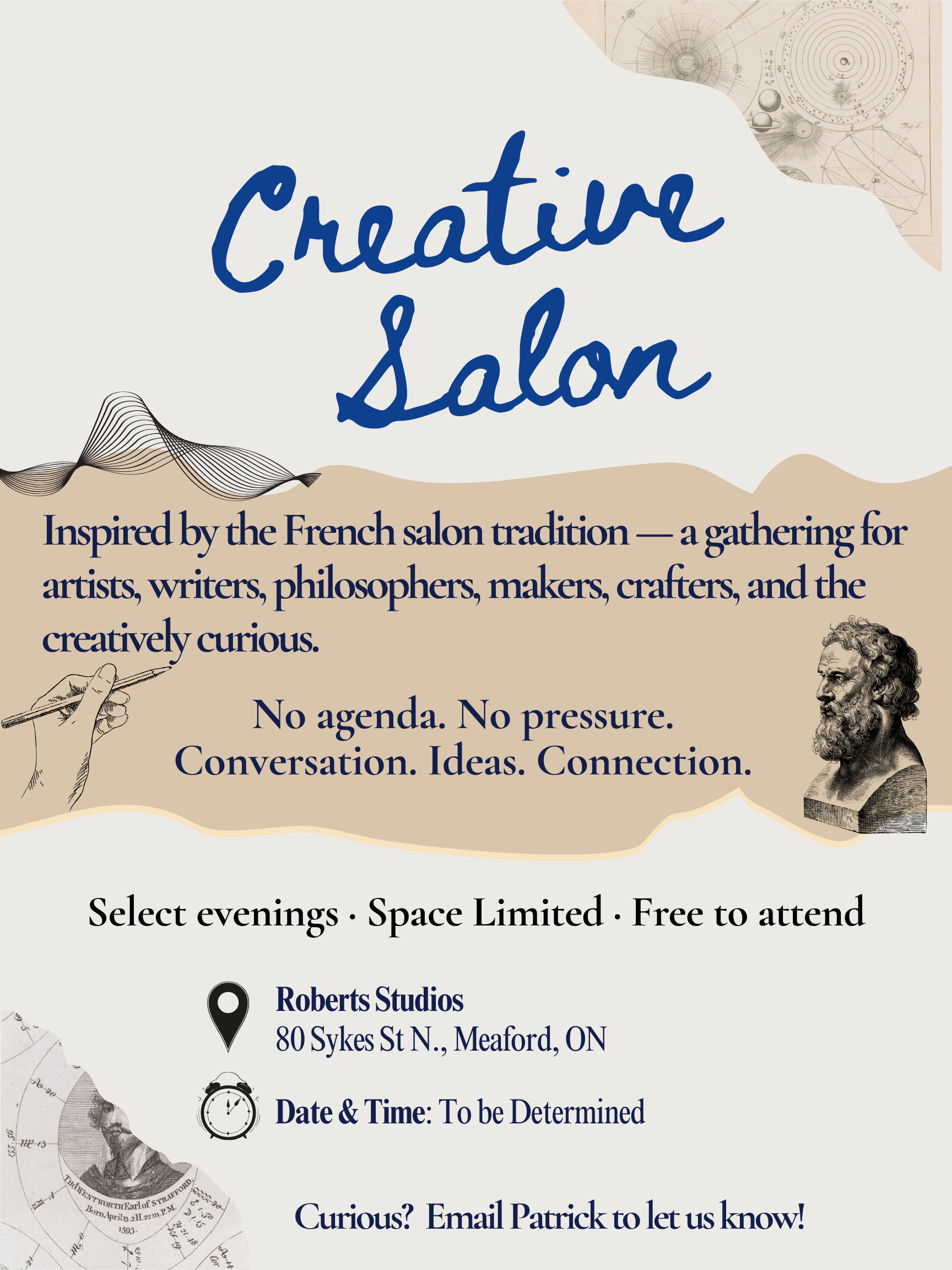 Inspired by the French salon tradition — a gathering for artists, writers, philosophers, makers, crafters, and the creatively curious.